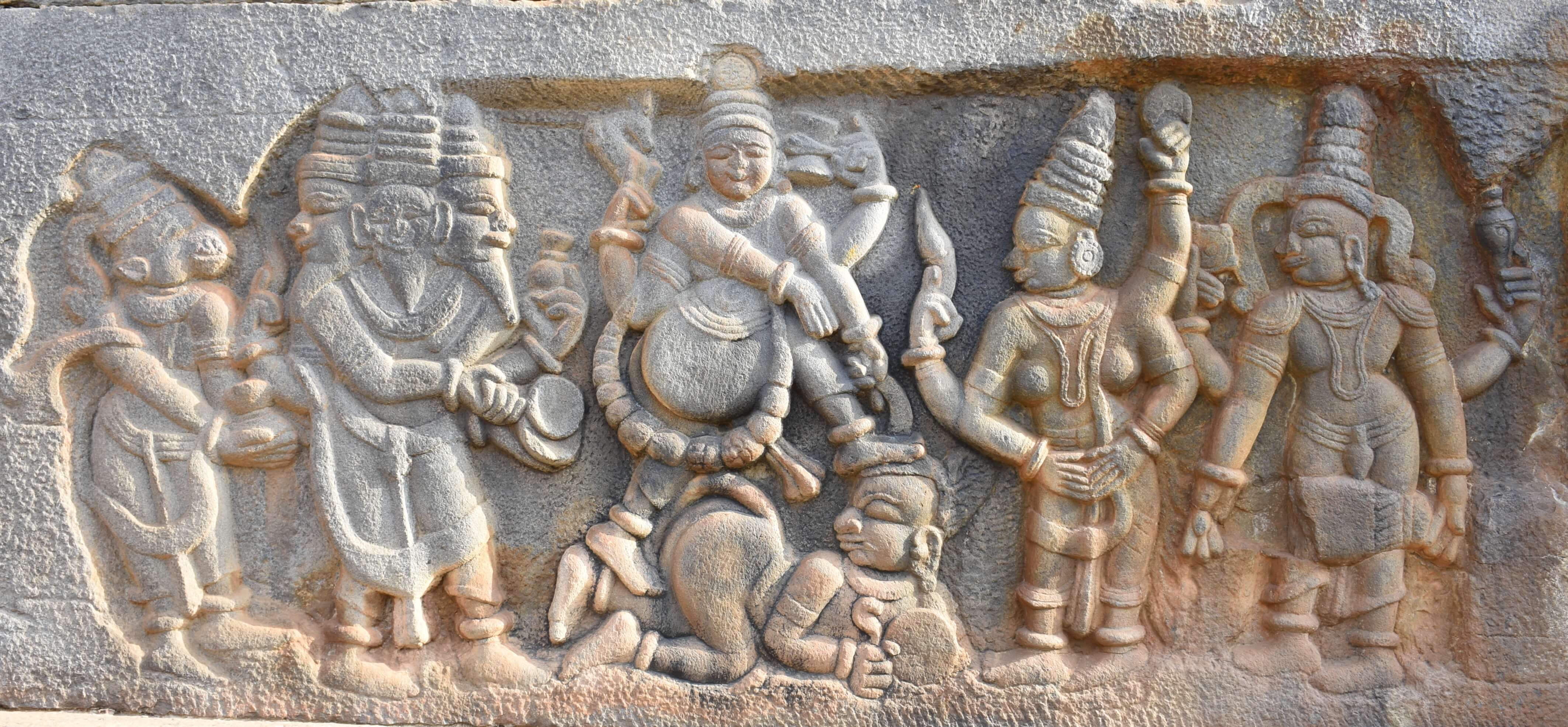 The temple is believed to have been constructed by the Kadambas. It has many additions to its credit during the rule of KalyanaChalukyas and the Sonda rulers, and is a synthesis of different architectural styles. One can notice a combination of the Kadamba, Kalyana Chalukya and Hoysala styles in it. The main sanctum and navarangaare normally attributed to the Kadambas. The navaranga pillars have square cross sections with circular cushions at the top. The sanctum has the Madhukesvaralinga which cannot be easily attributed to the Kadambas as its ‘Yonipeetha’ and the flat headed linga appear to be of a later period. The statues in the temple of Adi-Madhava and Kartikeya are of Kadamba style. The parapet around the navaranga has rows of carvings in relief on the exterior and one of the rows shows figures of 12 Adityas, the dikpalakas, ten avataras of Vishnu. There are many shrines big and small along the compound of the main temple.